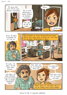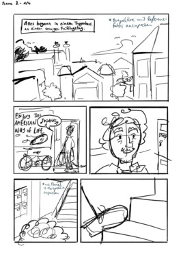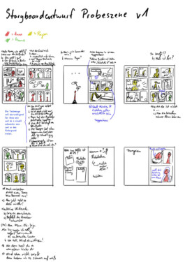 Die final ausgearbeiteten Seiten des Storyboards, die neben Skript und Plot entstanden sind.